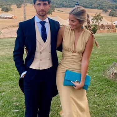 Considera que el evento es al aire libre, con piso de piedra y pasto.